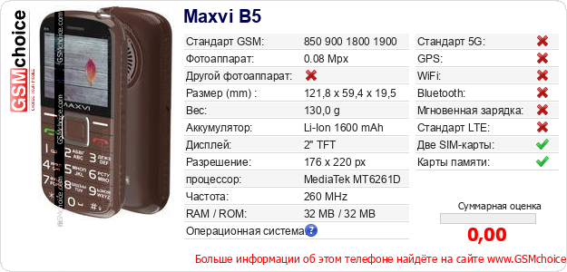 Данные о телефоне Maxvi B5 на Вашем сайте