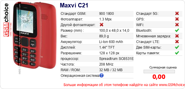 Данные о телефоне Maxvi C21 на Вашем сайте