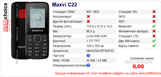 Данные о телефоне Maxvi C22 на Вашем сайте