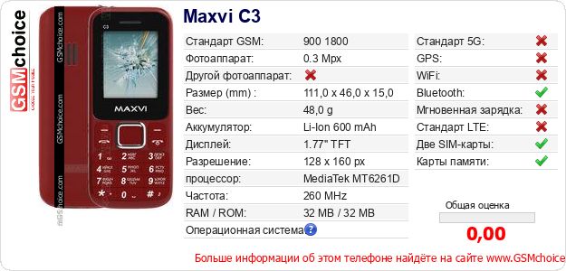 Данные о телефоне Maxvi C3 на Вашем сайте