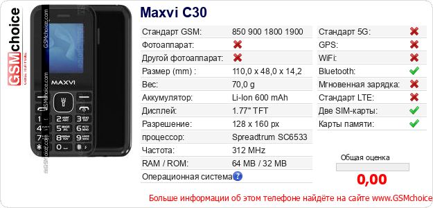 Данные о телефоне Maxvi C30 на Вашем сайте