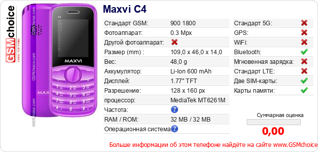 Данные о телефоне Maxvi C4 на Вашем сайте