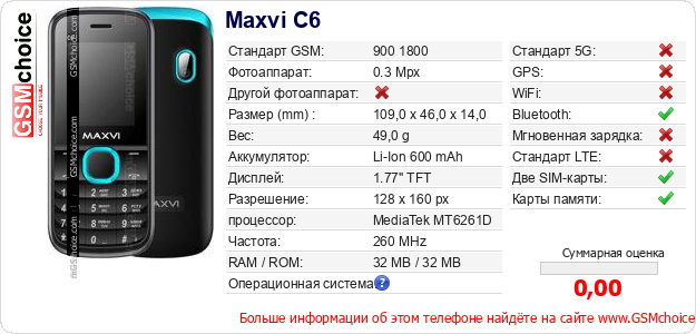 Данные о телефоне Maxvi C6 на Вашем сайте
