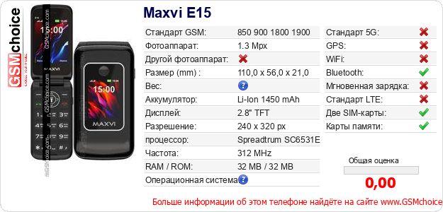 Данные о телефоне Maxvi E15 на Вашем сайте