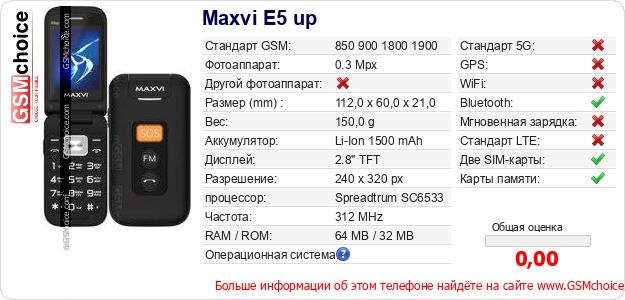 Данные о телефоне Maxvi E5 up на Вашем сайте
