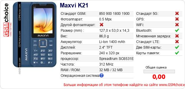 Данные о телефоне Maxvi K21 на Вашем сайте