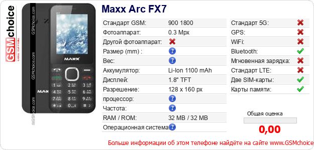 Данные о телефоне Maxx Arc FX7 на Вашем сайте