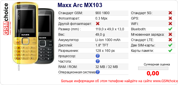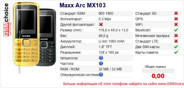 Данные о телефоне Maxx Arc MX103 на Вашем сайте