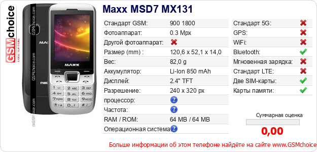 Данные о телефоне Maxx MSD7 MX131 на Вашем сайте