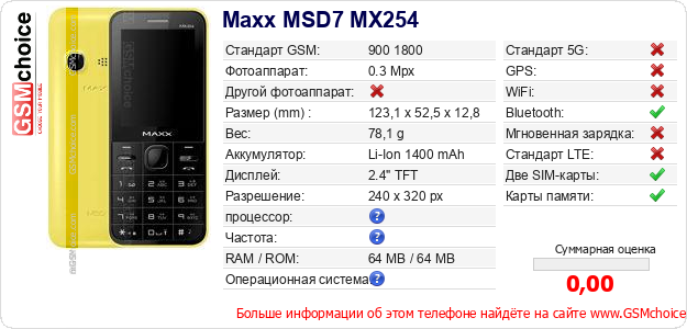 Данные о телефоне Maxx MSD7 MX254 на Вашем сайте
