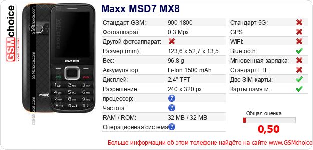 Данные о телефоне Maxx MSD7 MX8 на Вашем сайте
