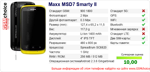 Данные о телефоне Maxx MSD7 Smarty II на Вашем сайте