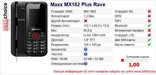 Данные о телефоне Maxx MX182 Plus Rave на Вашем сайте