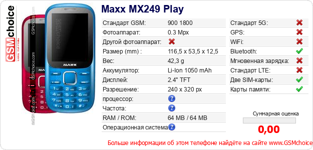 Данные о телефоне Maxx MX249 Play на Вашем сайте