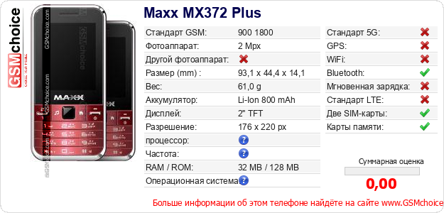Данные о телефоне Maxx MX372 Plus на Вашем сайте