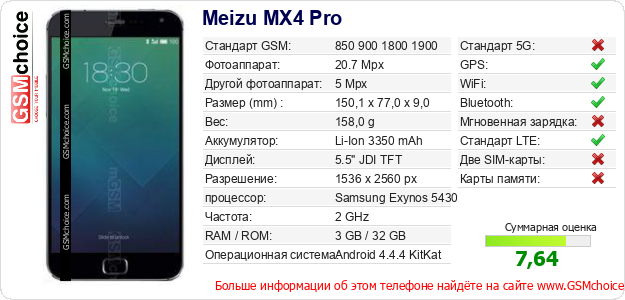 Данные о телефоне Meizu MX4 Pro на Вашем сайте