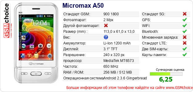 У Тебя есть свой сайт? Хочешь где-то разместить информацию о базовых данных мобильника Micromax A50 ? Это запросто устроить. Достаточно скачать картинку или скопировать и разместить на соответствующем сайте нижерасположенный код:Размещение этого кода вызовет появление нижерасположенной картинки: