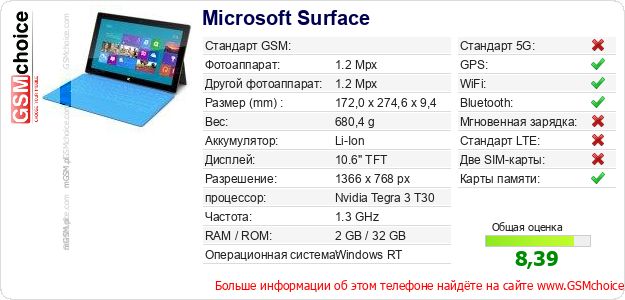 Данные о телефоне Microsoft Surface на Вашем сайте