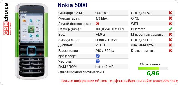 Данные о телефоне Nokia 5000 на Вашем сайте