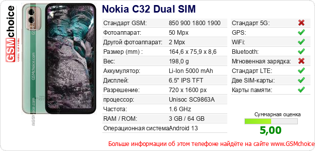 Данные о телефоне Nokia C32 Dual SIM на Вашем сайте