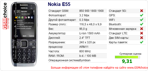 Данные о телефоне Nokia E55 на Вашем сайте