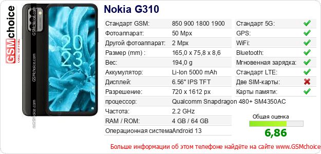 У Тебя есть свой сайт? Хочешь где-то разместить информацию о базовых данных мобильника Nokia G310 ? Это запросто устроить. Достаточно скачать картинку или скопировать и разместить на соответствующем сайте нижерасположенный код:Размещение этого кода вызовет появление нижерасположенной картинки: