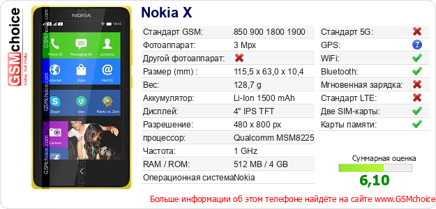 Данные о телефоне Nokia X на Вашем сайте