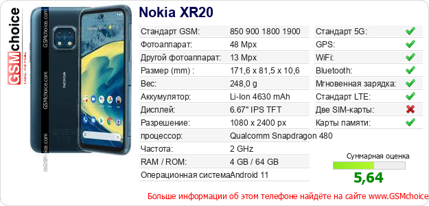 Данные о телефоне Nokia XR20 на Вашем сайте