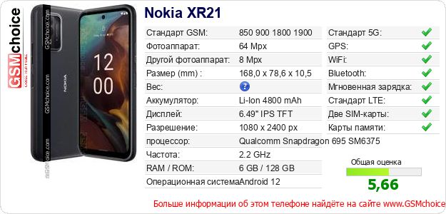 Данные о телефоне Nokia XR21 на Вашем сайте