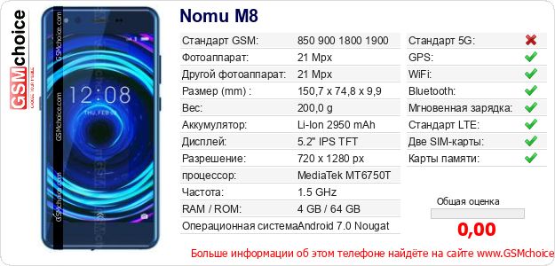 Данные о телефоне Nomu M8 на Вашем сайте