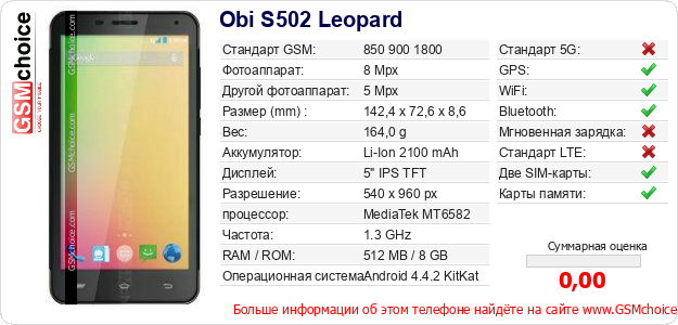 Данные о телефоне Obi S502 Leopard на Вашем сайте