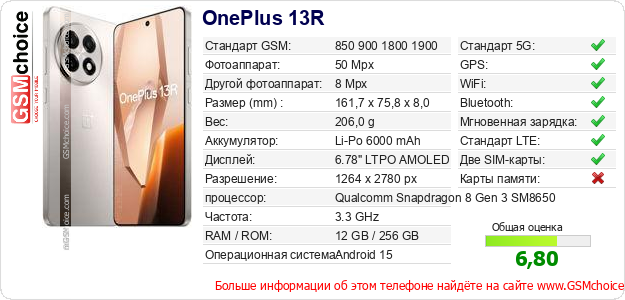 Данные о телефоне OnePlus 13R на Вашем сайте