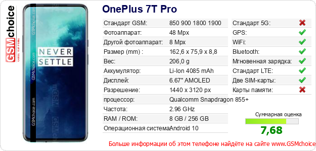 Данные о телефоне OnePlus 7T Pro на Вашем сайте