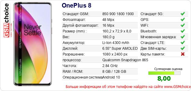 Данные о телефоне OnePlus 8 на Вашем сайте