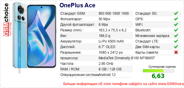 Данные о телефоне OnePlus Ace на Вашем сайте