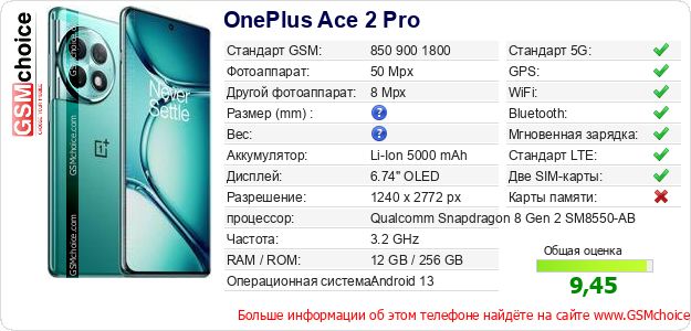 Данные о телефоне OnePlus Ace 2 Pro на Вашем сайте