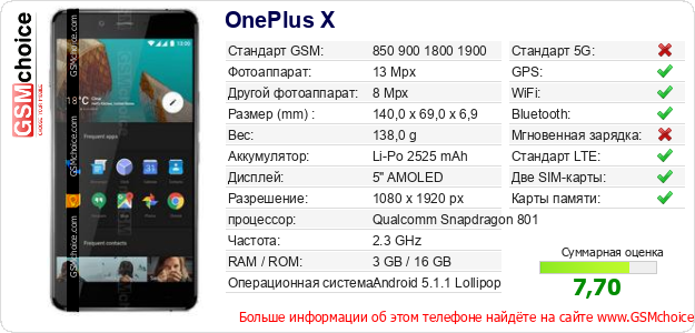 У Тебя есть свой сайт? Хочешь где-то разместить информацию о базовых данных мобильника OnePlus X ? Это запросто устроить. Достаточно скачать картинку или скопировать и разместить на соответствующем сайте нижерасположенный код:Размещение этого кода вызовет появление нижерасположенной картинки: