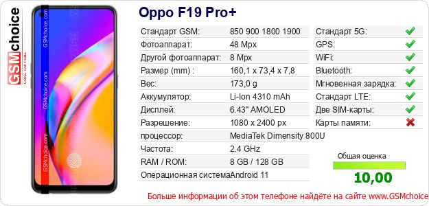 Данные о телефоне Oppo F19 Pro+ на Вашем сайте