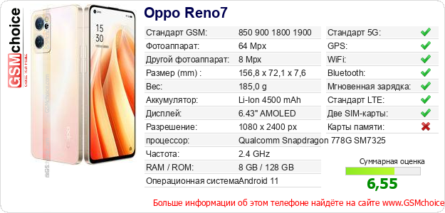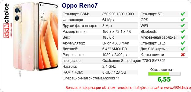 Данные о телефоне Oppo Reno7 на Вашем сайте