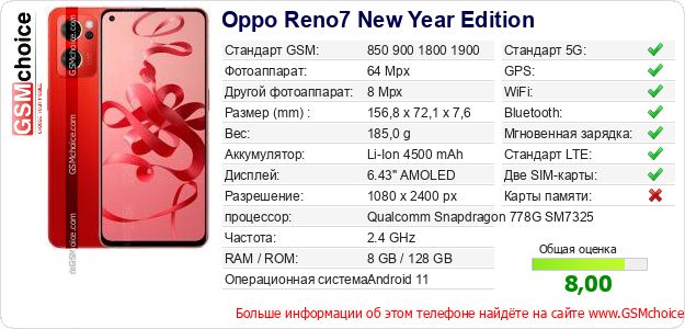 Данные о телефоне Oppo Reno7 New Year Edition на Вашем сайте