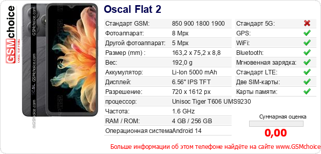 Данные о телефоне Oscal Flat 2 на Вашем сайте