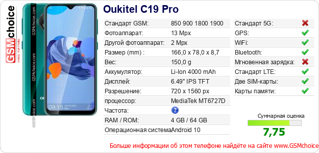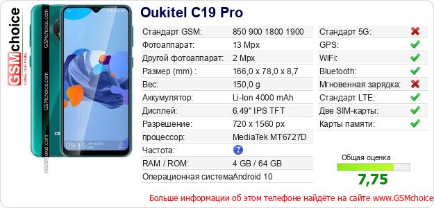 Данные о телефоне Oukitel C19 Pro на Вашем сайте