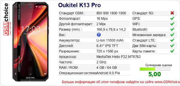 Данные о телефоне Oukitel K13 Pro на Вашем сайте