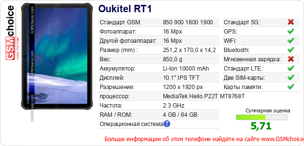 Данные о телефоне Oukitel RT1 на Вашем сайте