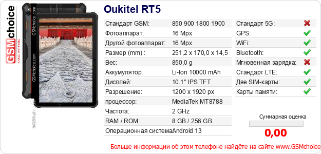 Данные о телефоне Oukitel RT5 на Вашем сайте