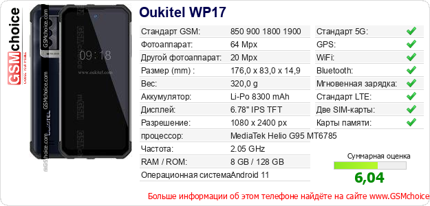 Данные о телефоне Oukitel WP17 на Вашем сайте