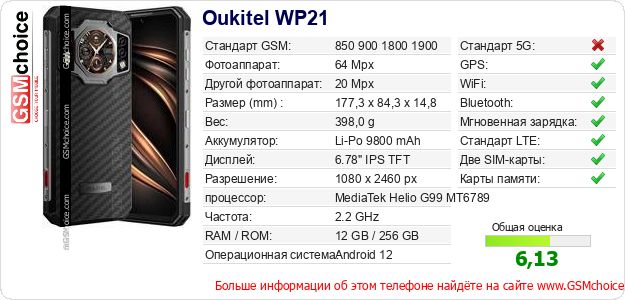 Данные о телефоне Oukitel WP21 на Вашем сайте