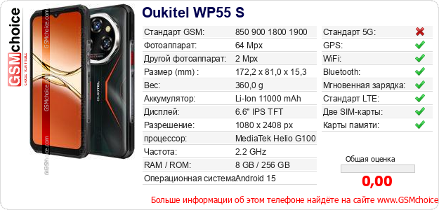 Данные о телефоне Oukitel WP55 S на Вашем сайте