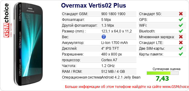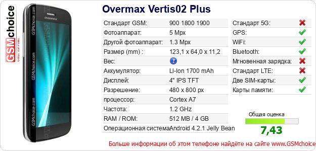 Данные о телефоне Overmax Vertis02 Plus на Вашем сайте