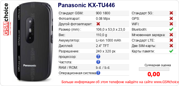 Данные о телефоне Panasonic KX-TU446 на Вашем сайте